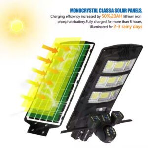 Cảm biến ánh sáng tự động, cảm biến chuyển động, điều khiển ở xa bằng remote đều là những tính năng tiện ích của đèn sáng Camera điện năng lượng mặt trời 450W – XA01
