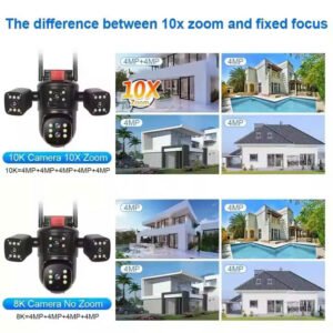 Camera 2 mắt chia 3 khung hình chất Lượng Hình Ảnh Full HD, Âm Thanh 2 Chiều, Tích Hợp Đèn, Hồng Ngoại Đen Ẩn, Góc nhìn rộng Rộng, Zoom 10x chạy bằng tấm pin điện năng lượng mặt trời, khi trời âm u không có nắng vẫn có thể sử dụng thêm 10 ngày, và khi trời mưa thì vẫn chạy 2-3 ngày