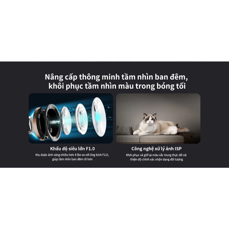 Camera mini wifi trong nhà 3MP (1296p), AI phát hiện người, nhìn đêm màu, đàm thoại 2 chiều, lưu thẻ 256GB hoặc cloud. Pin sạc, dễ lắp đặt.
