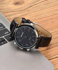 Camera Ngụy Trang Đồng Hồ Đeo Tay Dây Da Mặt Đen