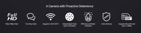 Camera có khả năng ngăn chặn chủ động: C3W là ci-Fi ngoài trời gắn tường Full HD, sử dụng đèn nháy và chuông báo động tích hợp, đồng thời cung cấp khả năng nói chuyện và độ bền hai chiều trong bamera Wất kỳ loại thời tiết nào.