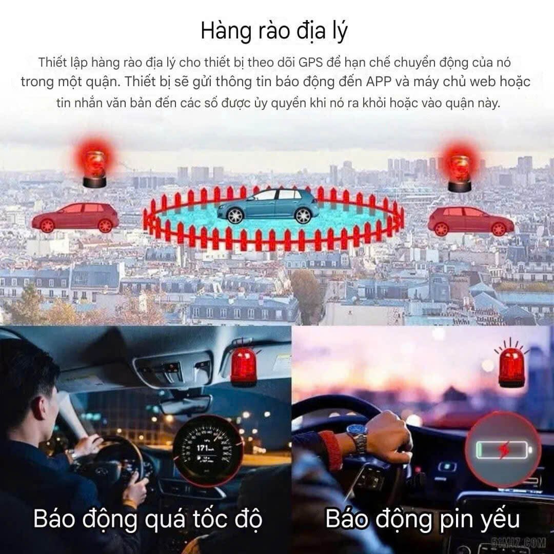 Cảnh báo thông minh: rung, dịch chuyển, pin yếu, hàng rào địa lý (geofence).