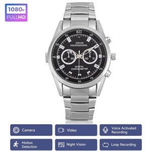 Hoàn toàn kín đáo: Thiết kế giống đồng hồ đeo tay màu bạc sang trọng, khó bị nhận ra là thiết bị ghi hình.