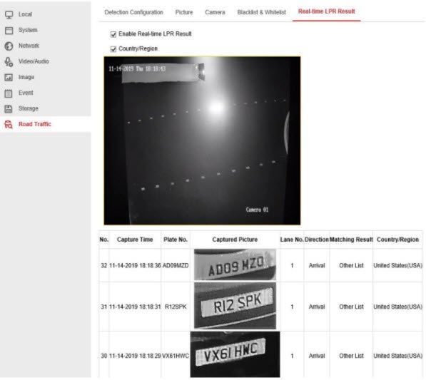 - Chọn Road Traffic -> Real-time LPR result. Lưu ý Mix-Traffic không hỗ trợ tính năng này.