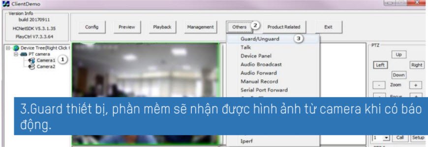 - Guard thiết bị, phần mềm sẽ nhận được hình ảnh từ camera khi có báo động