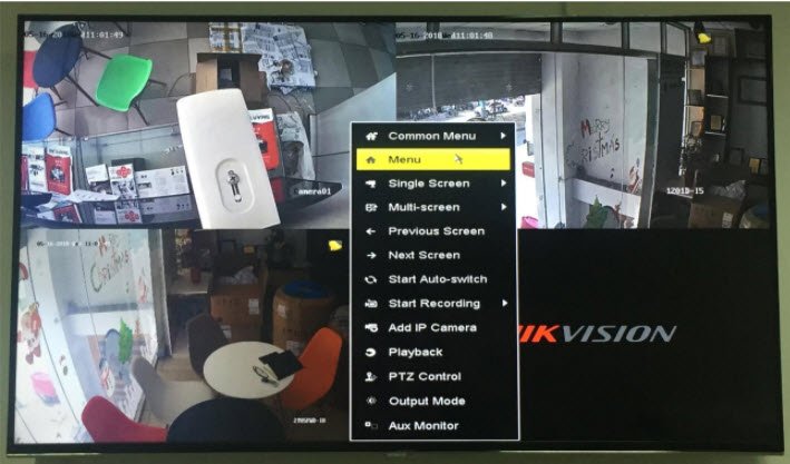 - Đầu tiên: Gán toàn bộ camera vào đầu ghi hình Bấm Chuột phải – chọn Menu
