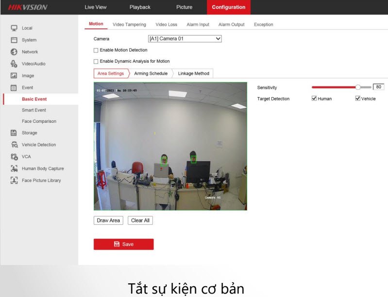 - Tính năng Face Comparison sẽ không thể sử dụng cùng lúc với tính năng Motion Detection, Intrusion Detection, Line Crossing Detection, Scene Change Detection.