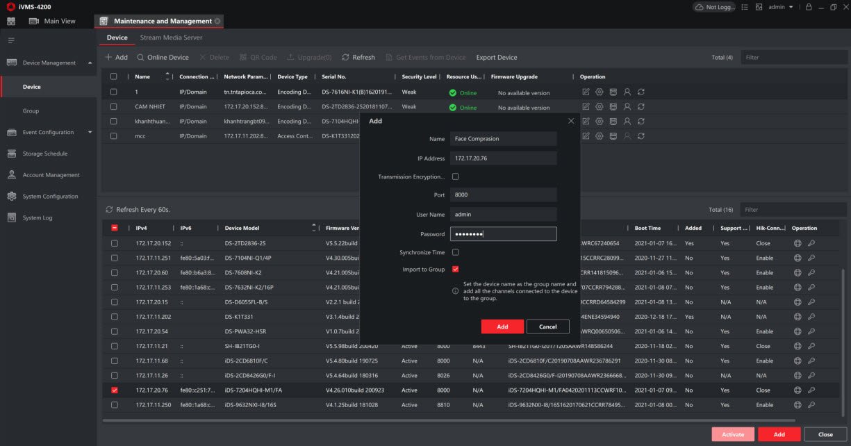 1. Gán thiết bị lên phần mềm iVMS4200.