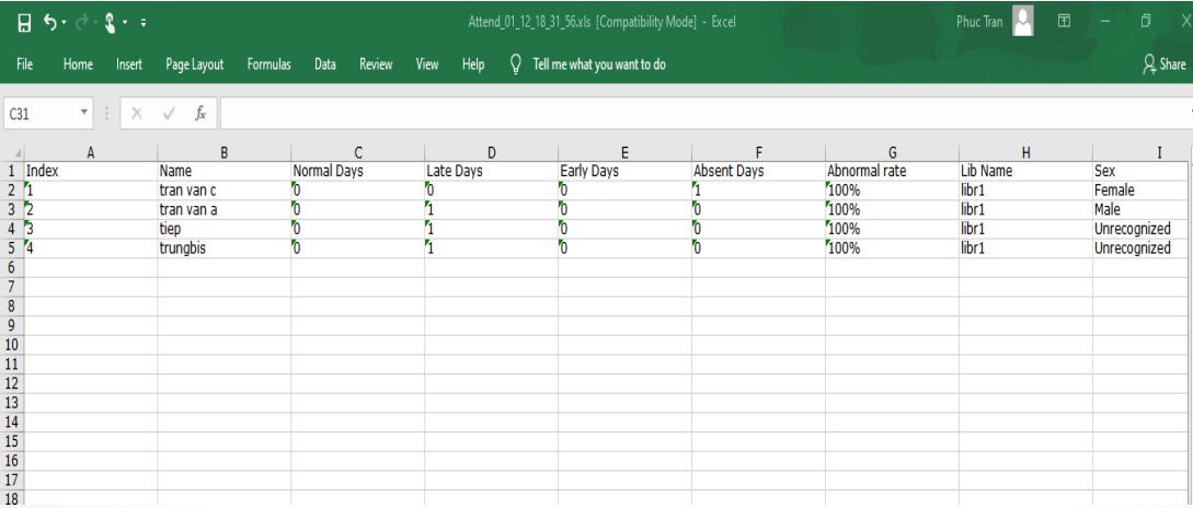 - Báo cáo chấm công sẽ được xuất ra USB, có định dạng excell.