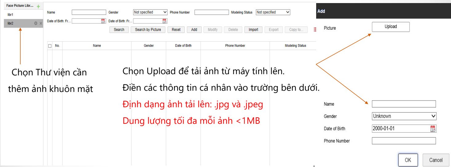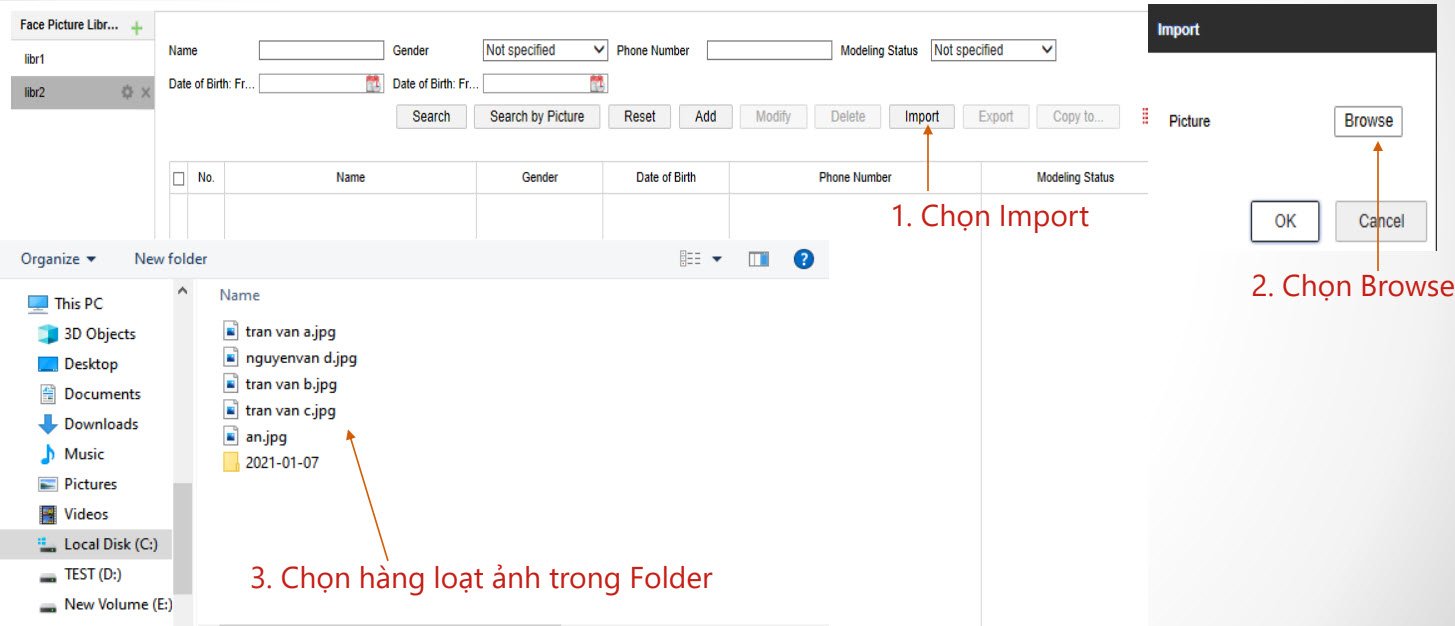 - Có thể thêm hàng loạt ảnh khuôn mặt lên Thư viện, từ Folder ảnh khuôn mặt đã tạo trên máy tính trước đó.