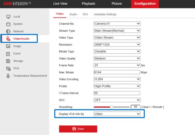 - Display VCA Info. on Stream: hiển thị VCA vào luồng video