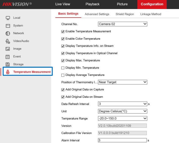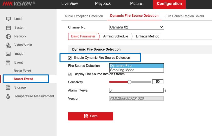 - Mục Configuration→ Event → Smart Event→ Dynamic Fire Source Detection → Basic Parameter