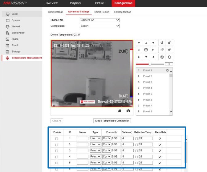 Mục Configuration→ Temperature Measurement and Alarm → Advanced Settings
