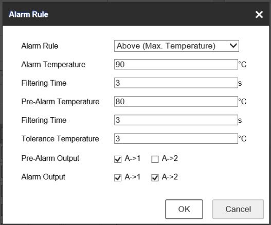 Mục Configuration→ Temperature Measurement and Alarm → Linkage Method