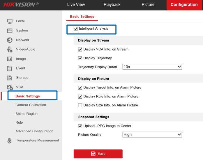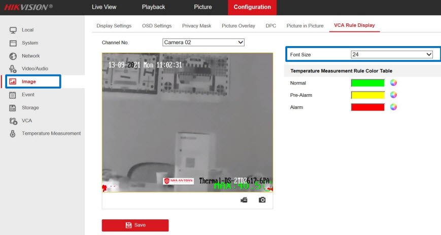 - Mục Configuration→ Image→ VCA Rule Display