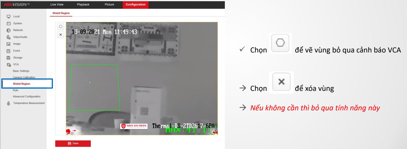 - Mục Configuration→ VCA → Shield Region