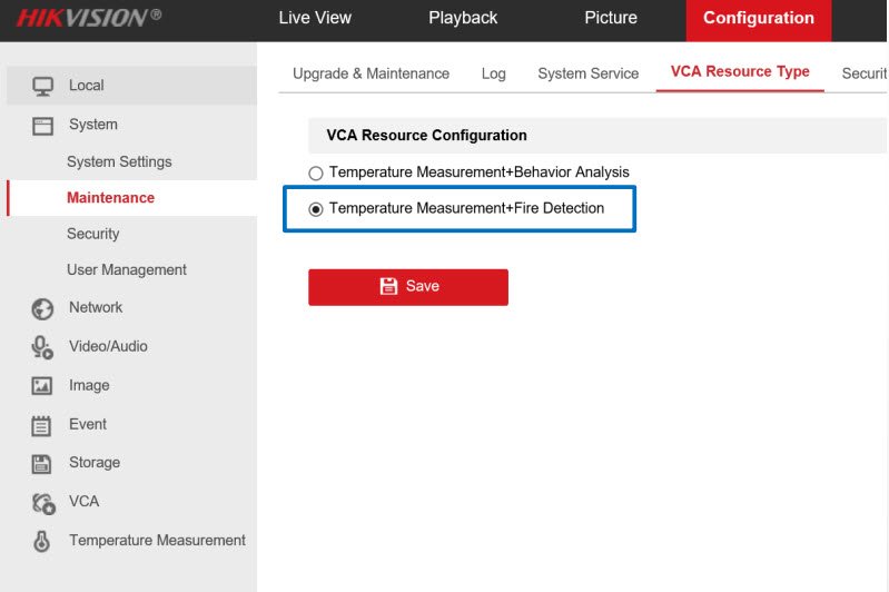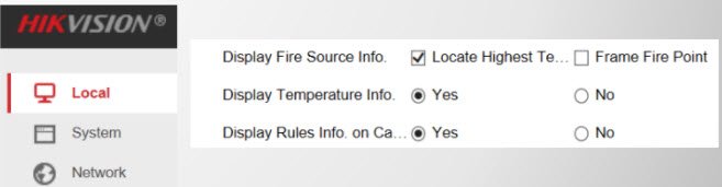 - Chọn Temperature Measurement+Fire Detection để bật chế độ phát hiện cháy và đo nhiệt độ.