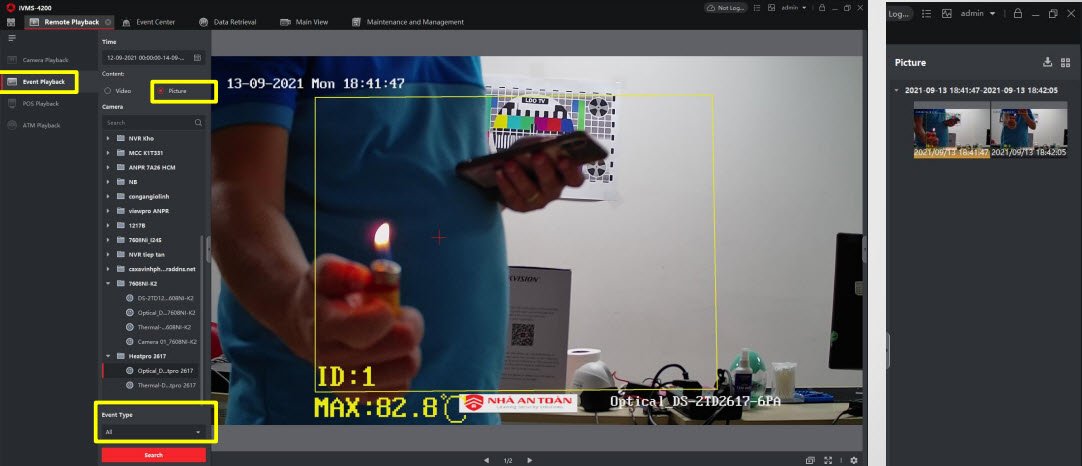 - Control Panel → Remote Playback → Event Playback→ Chọn Pictrure → Chọn Camera/NVR