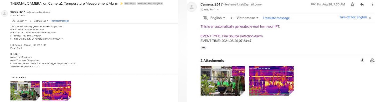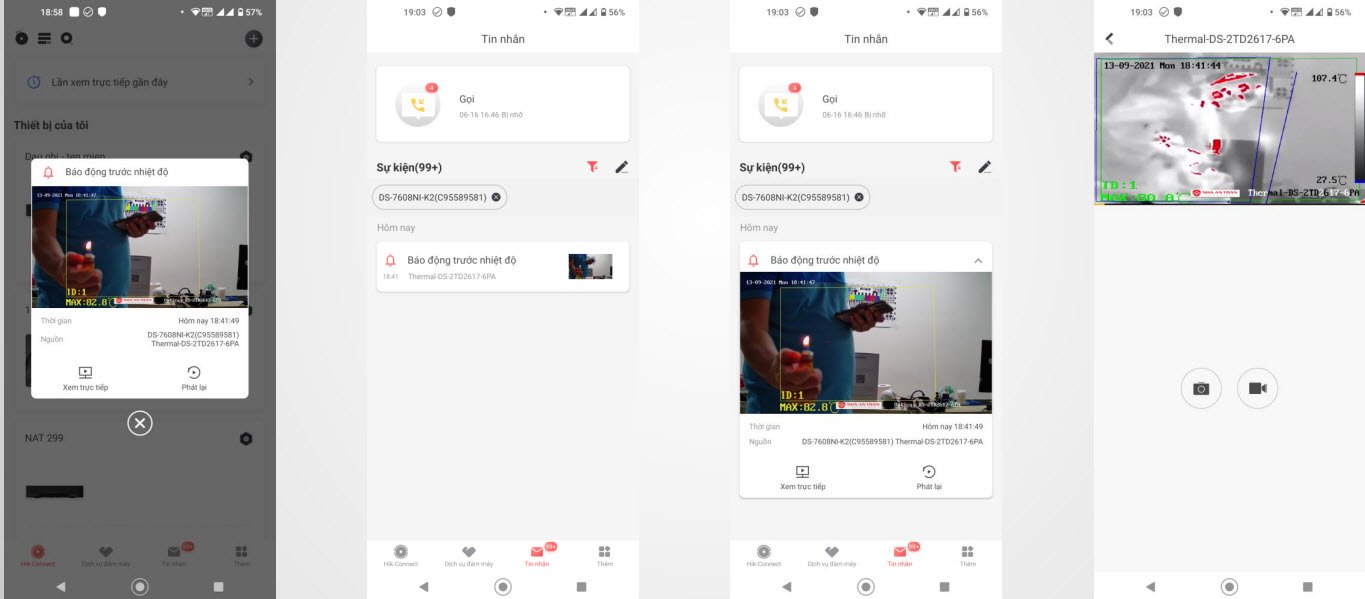 - Camera và NVR có hỗ trợ gửi báo động nhiệt độ cao lên phần mềm Hik-connect