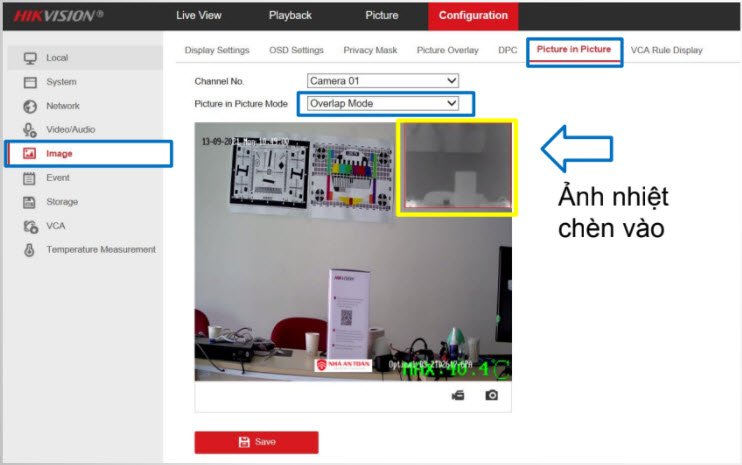 - Mục Configuration→ Image→ Pictrue in Pictrue → Chọn Camera 01 (ảnh quang)