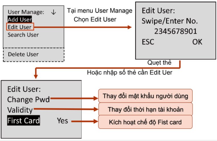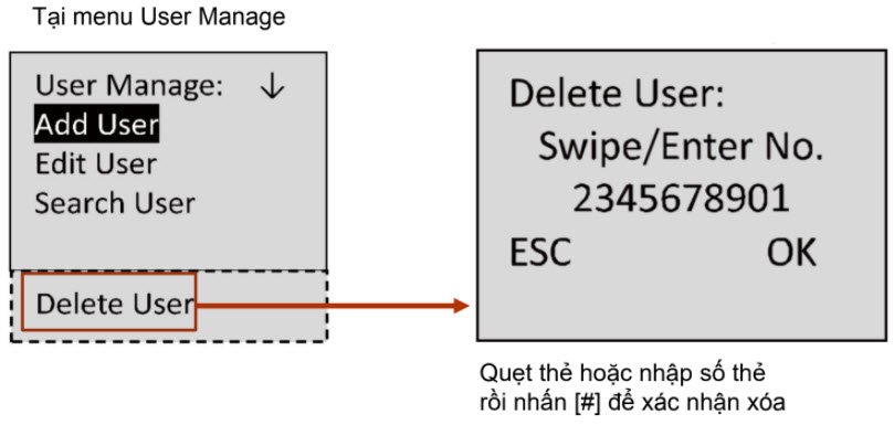 - Sau khi nhập mật khẩu nhấn [#] để xác nhận, sau đó nhấn [*] để back ra Menu User Manage.