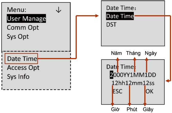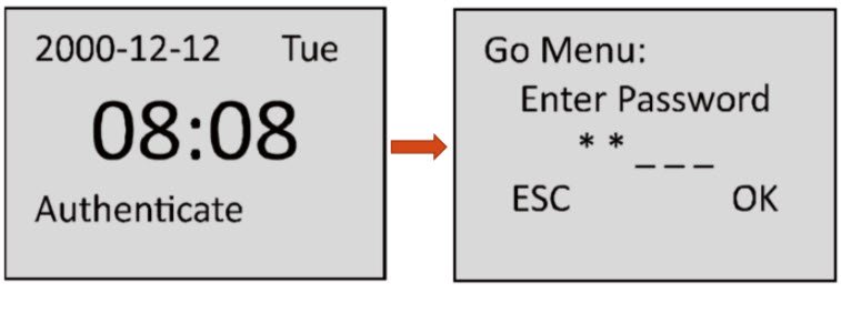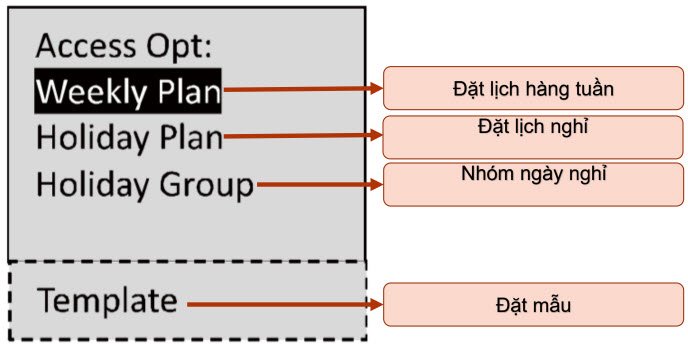 - Sau khi đăng ký card thành công, màn hình chuyển qua giao diện lịch phân quyền, nhấn [#] để xác nhận và chuyển sang màn hình đăng ký mật khẩu người dùng.