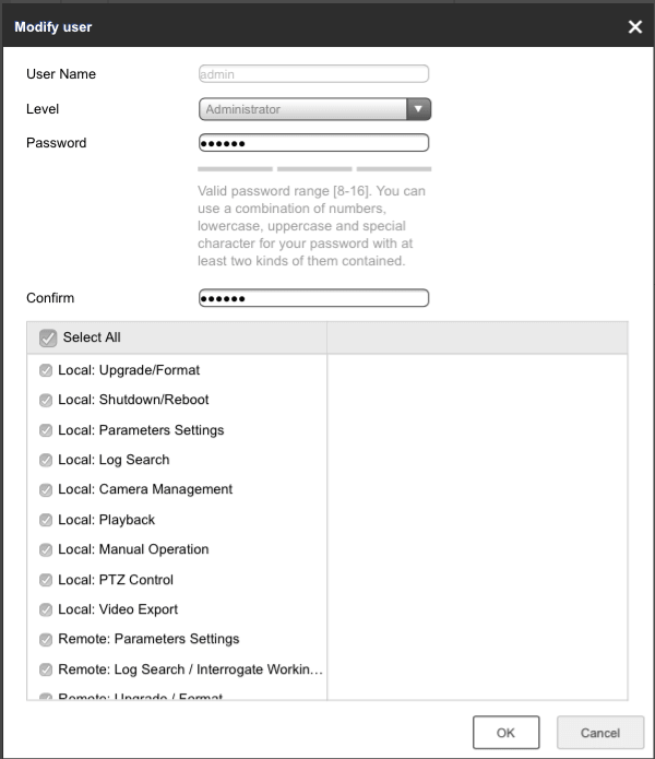 Sau khi kích vào chữ Modify thì mọi cửa sổ Modify user sẽ hiện ra, các bạn chỉ việc đánh pass vào phần Password và gõ lại pass vào phần Confirm.
