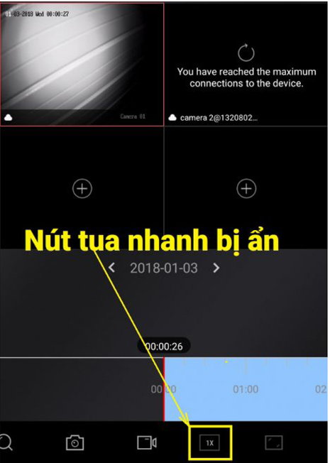 - Do sử dụng camera IP wifi không dây hoặc đầu ghi Hikvision đời cũ, và xem qua mạng bằng chế độ Cloud, nút tua nhanh bị ẩn đi