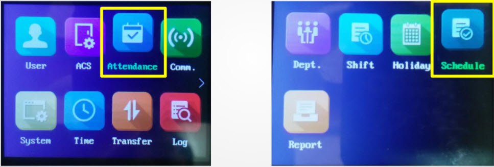 • Chọn Attendance → Chọn Schedule để vào đặt những ngày cần chấm công